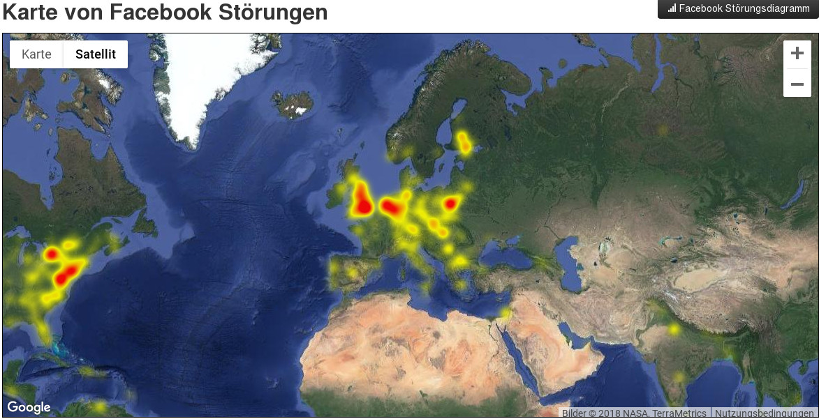 Laut dem Störungsbild von Allesstörungen geht die Störung von der Ostküste der USA nach Europa bis hinein nach Osteuropa.