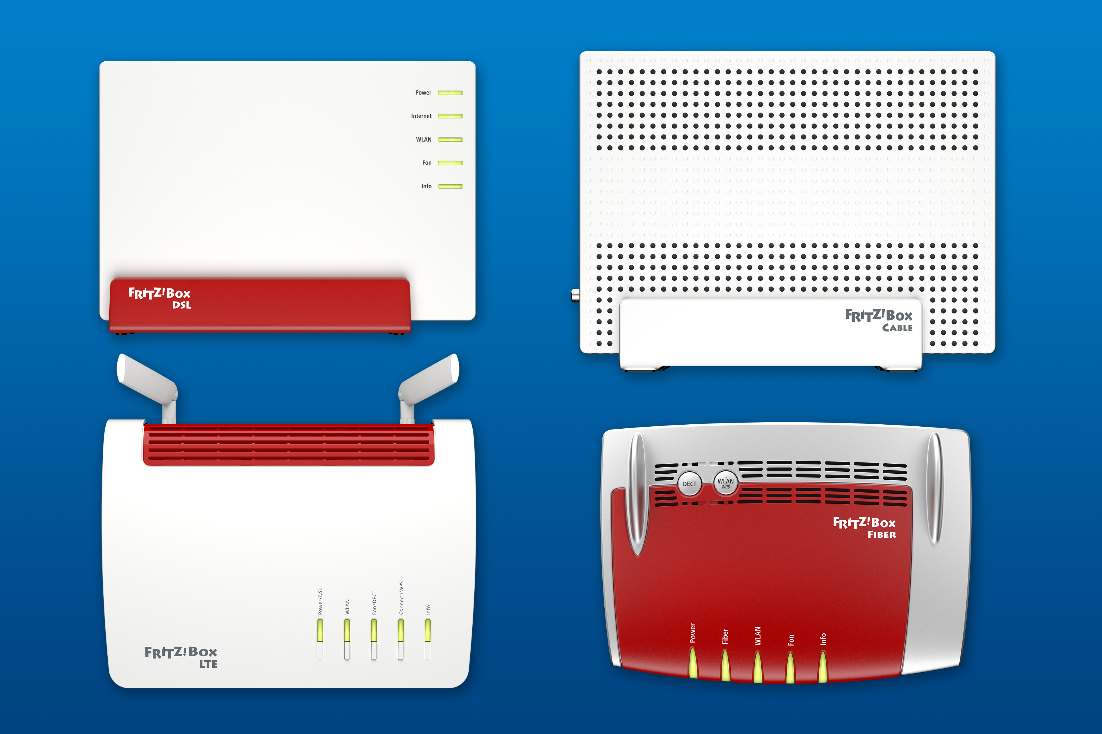 Das neue Modell unterstützt auch Bonding und kann so die Geschwindigkeiten der DSL-Ausbaustufen gebündelt für doppelte Übertragungsraten bereitstellen. Für den Gigabitausbau in den Kabelnetzen steht die FRITZ!Box 6591 Cable mit DOCSIS 3.1 bereit, und für den Glasfaseranschluss bietet AVM mit der FRITZ!Box 5491 und 5490 zwei Endgeräte für die passive und aktive Glasfasertechnologie.