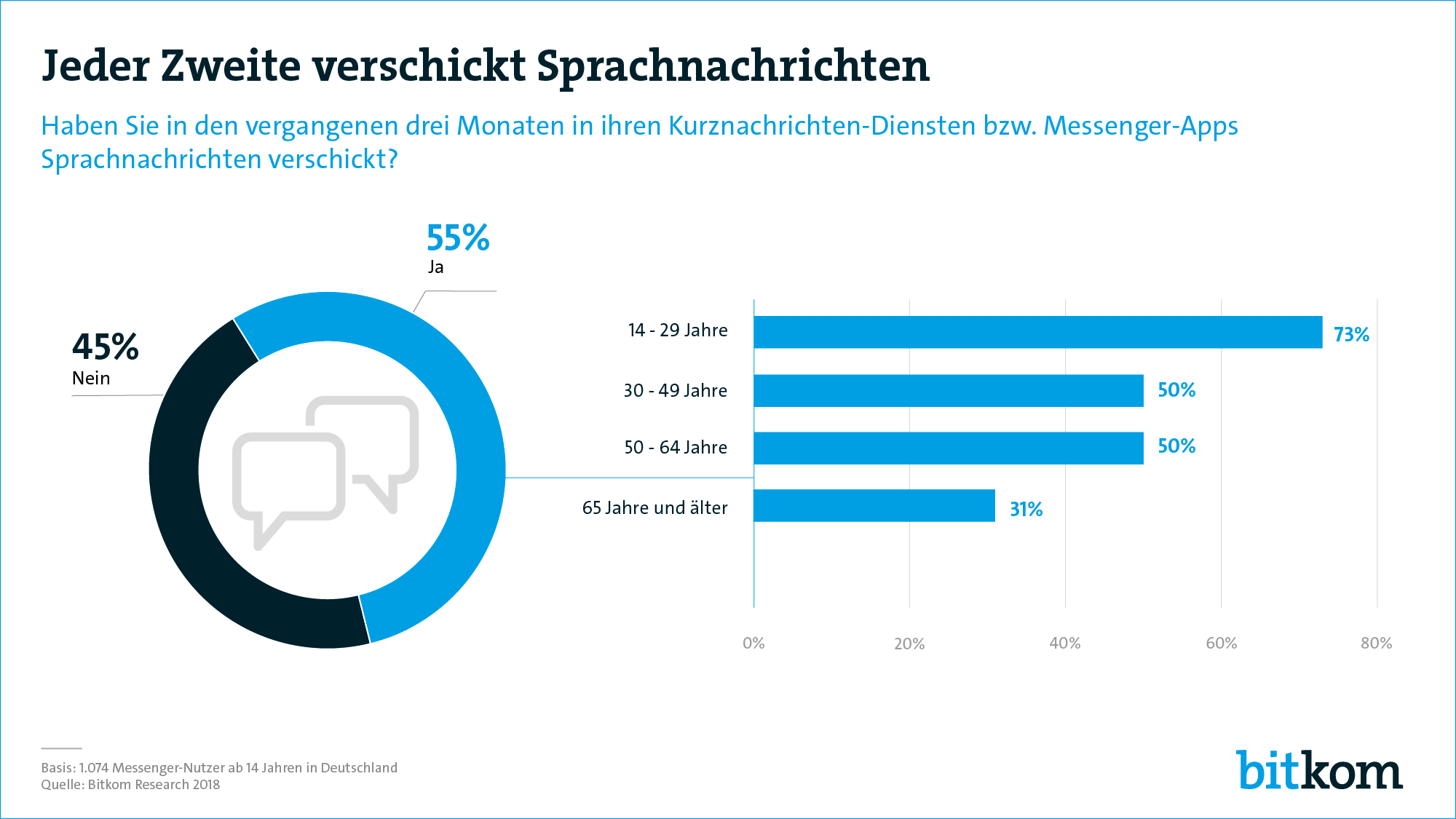 | Sprachnachrichten sind besonders bei den jüngeren beliebt --Bild: Bitkom | |