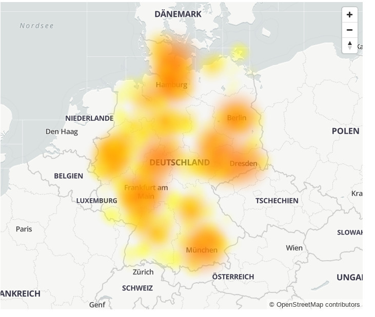 Ansonsten gab es am 28.Januar um rund 1 Uhr einen massiven Peak von rund 2730 Meldungen. Auch hier gab es viele Meldungen aus dem Norden von Deutschland. Dieser Peak hat aber auch nur rund 1 Stunde angehalten. Daher wird wohl fleißig im Vodafone Netz gearbeitet.
