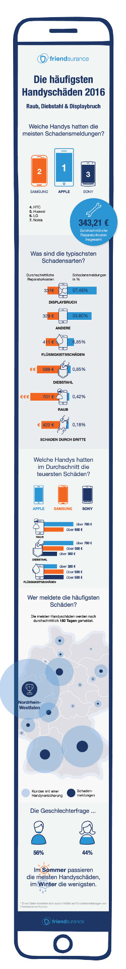 Die häufigsten Handyschäden 2016 -Bild: Friendsurance